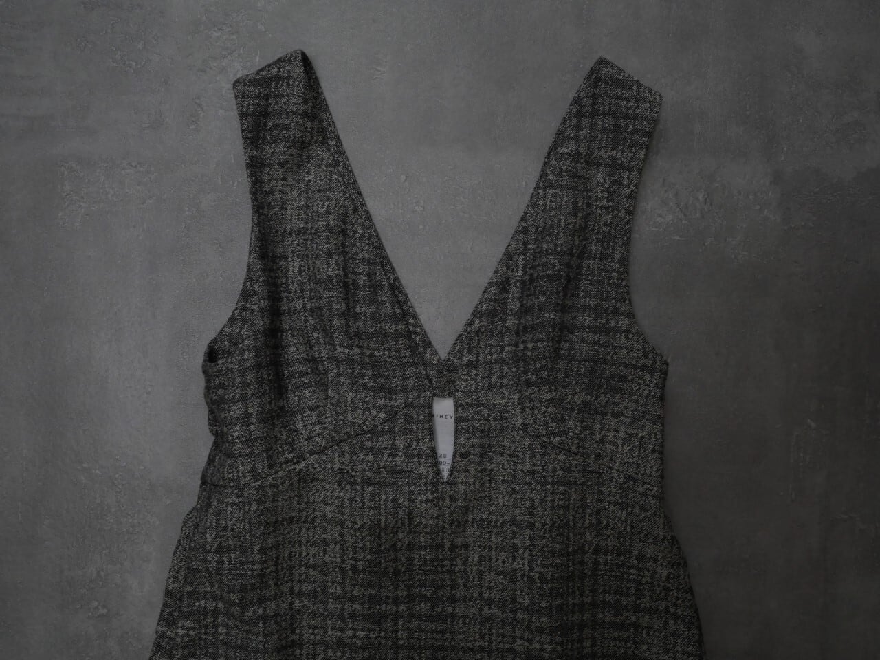後ろ姿は深いVネックに仕立て、すっきりとした印象に。