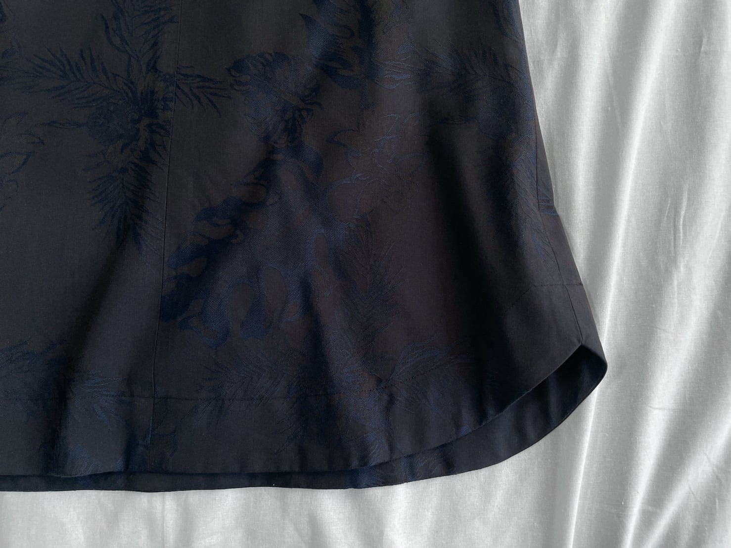 フローラル柄でフレア袖という可愛らしさと、ワークテイストのカッコよさという相反する雰囲気をお楽しみください。