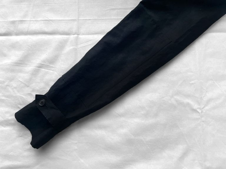 生地は追撚したキュプラの光沢感と、リネンのナチュラルさがバランス良く織り上げられています。